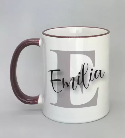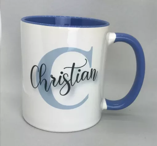 Die Farbe des Großbuchstaben ist an die Farbe der Tasse angepasst.